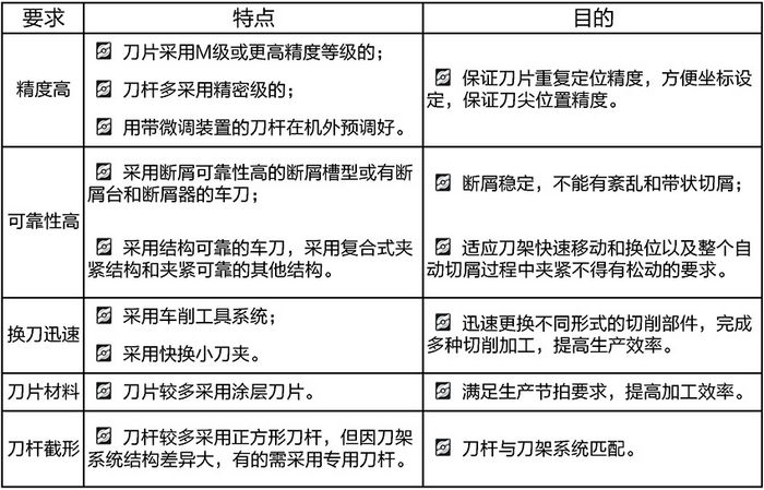 的刀具,具体要求和特点如下图表所示。